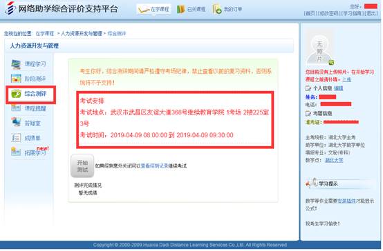 201904期网络注册学习综合测评的考场安排已公布,请各位学员登录网络注册学习平台,在所学课程界面的“综合测评”栏中查看各门课程的考试时间(每门课程考试时间不一样),如下图: